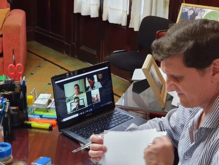 Por medio de una teleconferencia, el Ministro de Hacienda de Misiones, Adolfo Safrán dialogó con el presidente de la Cámara de Comercio e Industria de Posadas, Sergio Bresiski y los consejeros de la institución Fernando Vely, Carlos María Beigbeder y Nicolás Trevisan, donde se plantearon diversas propuestas para atender la situación del sector comercial e industrial ante la crisis.