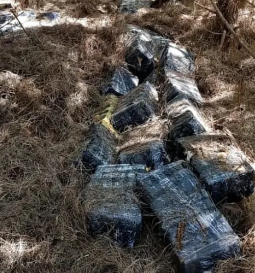 Tras expandir la zona de búsqueda, las y los miembros de la fuerza lograron hallar la droga escondida y distribuida en dos lugares de plantaciones de pinos: en el primero encontraron 34 bultos, mientras que, en el segundo, otros 62, totalizando 96 bultos con marihuana a granel. En ellos se ocultaba -según su primer pesaje- 1906 kilogramos de la droga, aunque aún se continuaba precisando la cantidad de paquetes hallados dentro de los bultos.