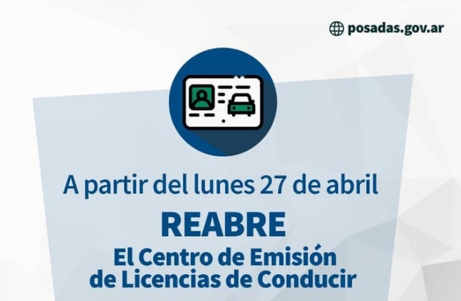 La Municipalidad de Posadas informa que desde el lunes comienza a funcionar el Centro de Emisión de Licencias de Conducir, en el horario de 7 a 13 Hs.