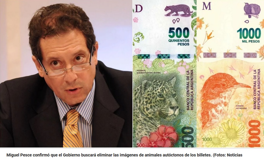 En ese sentido, adelantó que el nuevo billete será de “dos mil o cinco mil pesos, se están haciendo análisis”, pero consideró: “A los argentinos no nos gustan los billetes que van en el medio. El de $200 no es un billete que la gente valore mucho, no circula tanto”. Sobre las imágenes que llevarán, Pesce recordó: “Ya lo dijo el Presidente, él quiere abandonar estas figuras de animalitos“.