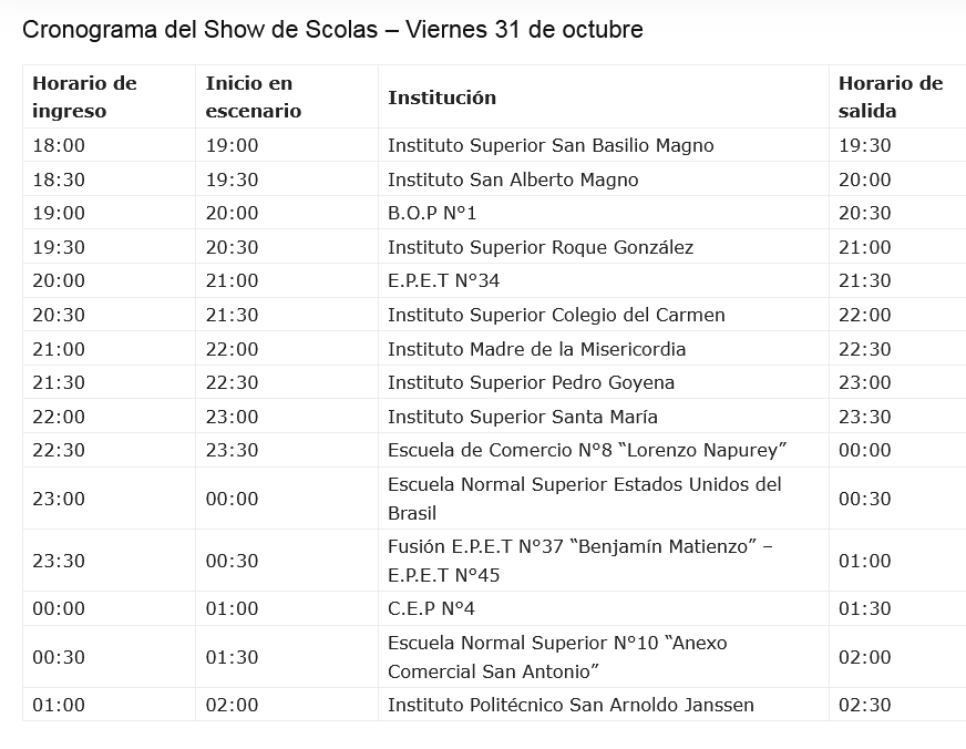 Este viernes 31 de octubre, el Parque La Cascada de Posadas será el punto de encuentro de miles de jóvenes que darán vida al Show de Scolas de la Estudiantina 2025, uno de los momentos más esperados del año.