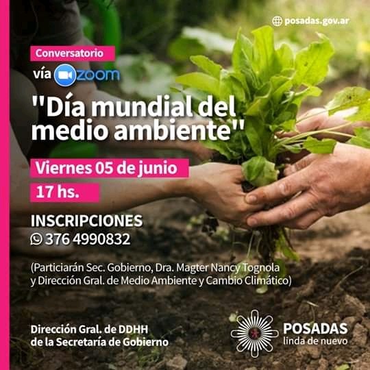 Desde la Dirección General de Derechos Humanos de la Municipalidad de Posadas invitan a participar de la jornada de Conversatorio en marco del “Día Mundial del Medio Ambiente” que será el día 5 de Junio.