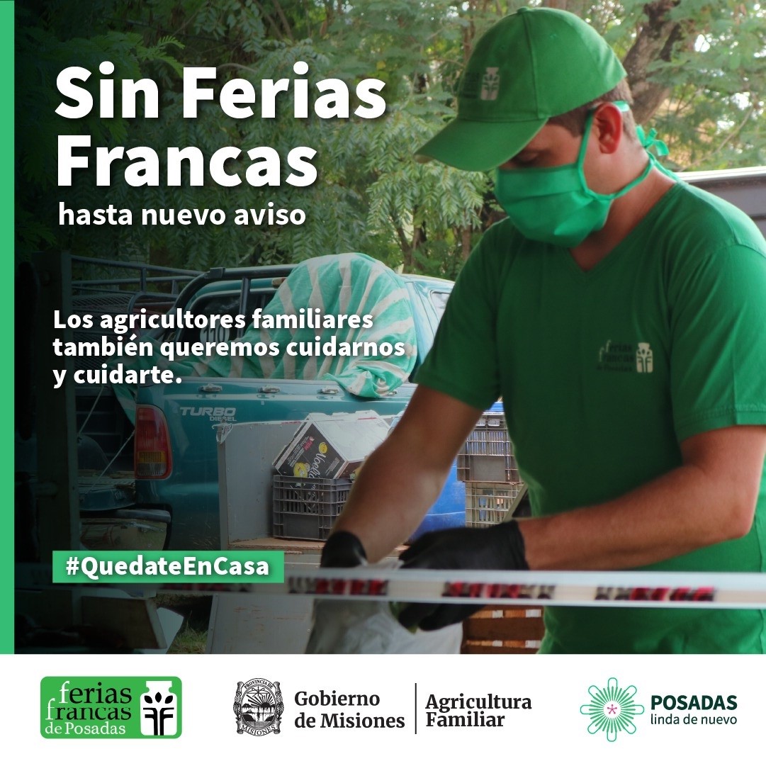 La Municipalidad de Posadas informa que las doce Ferias Francas que funcionan en la ciudad cerrarán sus puertas ante  la declaración del Gobierno provincial de la “circulación comunitaria de coronavirus en Misiones”. La postergación de esta actividad será de manera temporal.