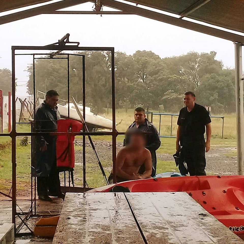 Posadas: Policías asistieron a un palista que intentaba salir del río Paraná durante la tormenta
