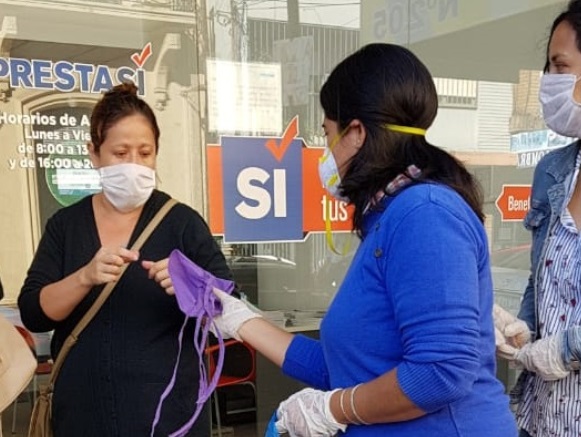 Durante este lunes en las filas de los bancos, rapipagos y plazas del centro de la ciudad de Posadas, se realizó un operativo de concientización acerca del COVID-19.