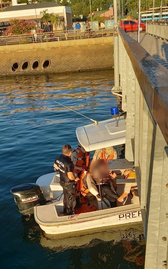 Los motorizados fueron de inmediato al lugar y allí fue que el oficial Ayudante Juan Ignacio Calvo, se lanzó al río para rescatar a la mujer que procuraba mantenerse a flote. En ese momento se presentaron demás integrantes de la fuerza policial quienes colaboraron lanzando una soga y salvavidas para la mujer y el oficial. Los mismos fueron asistidos luego por personal de la Prefectura Naval Argentina que acudió al sitio en una embarcación y los trasladaron hasta la estación fluvial.