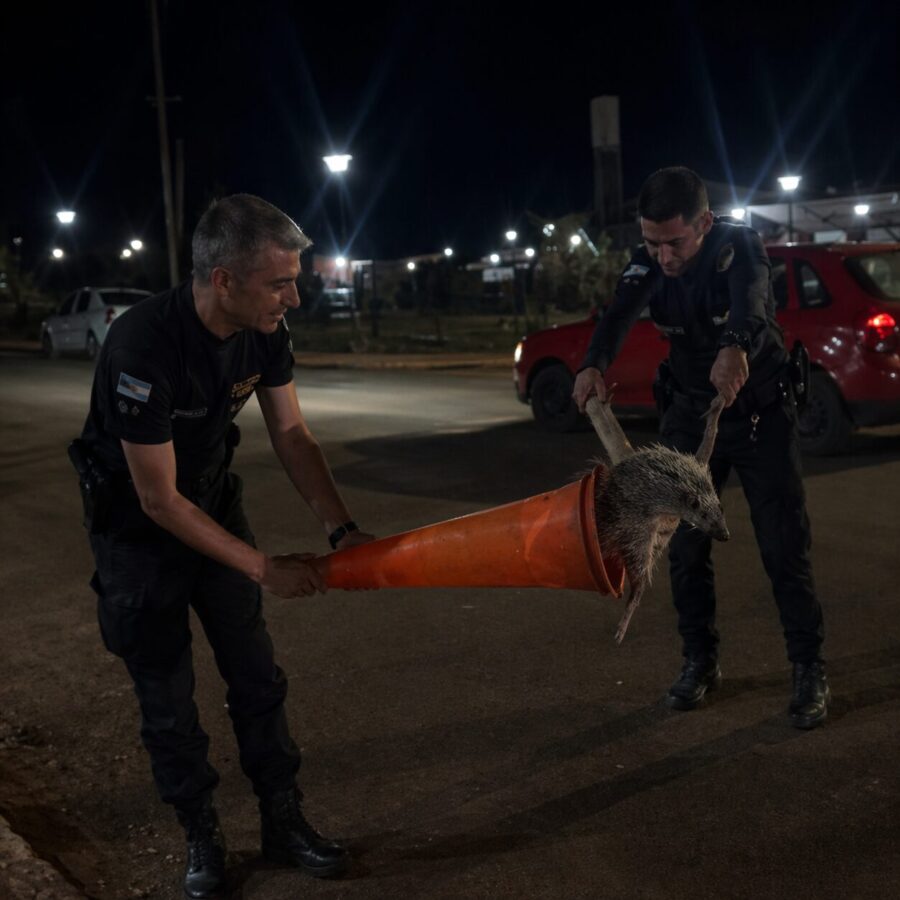 Al arribar, los efectivos identificaron al animal como un coendú, especie autóctona de la región, que se encontraba desorientado. Siguiendo los protocolos correspondientes, procedieron a su resguardo mediante técnicas seguras de manipulación, presumiendo que podría haber estado en cautiverio antes de aparecer en la zona urbana.